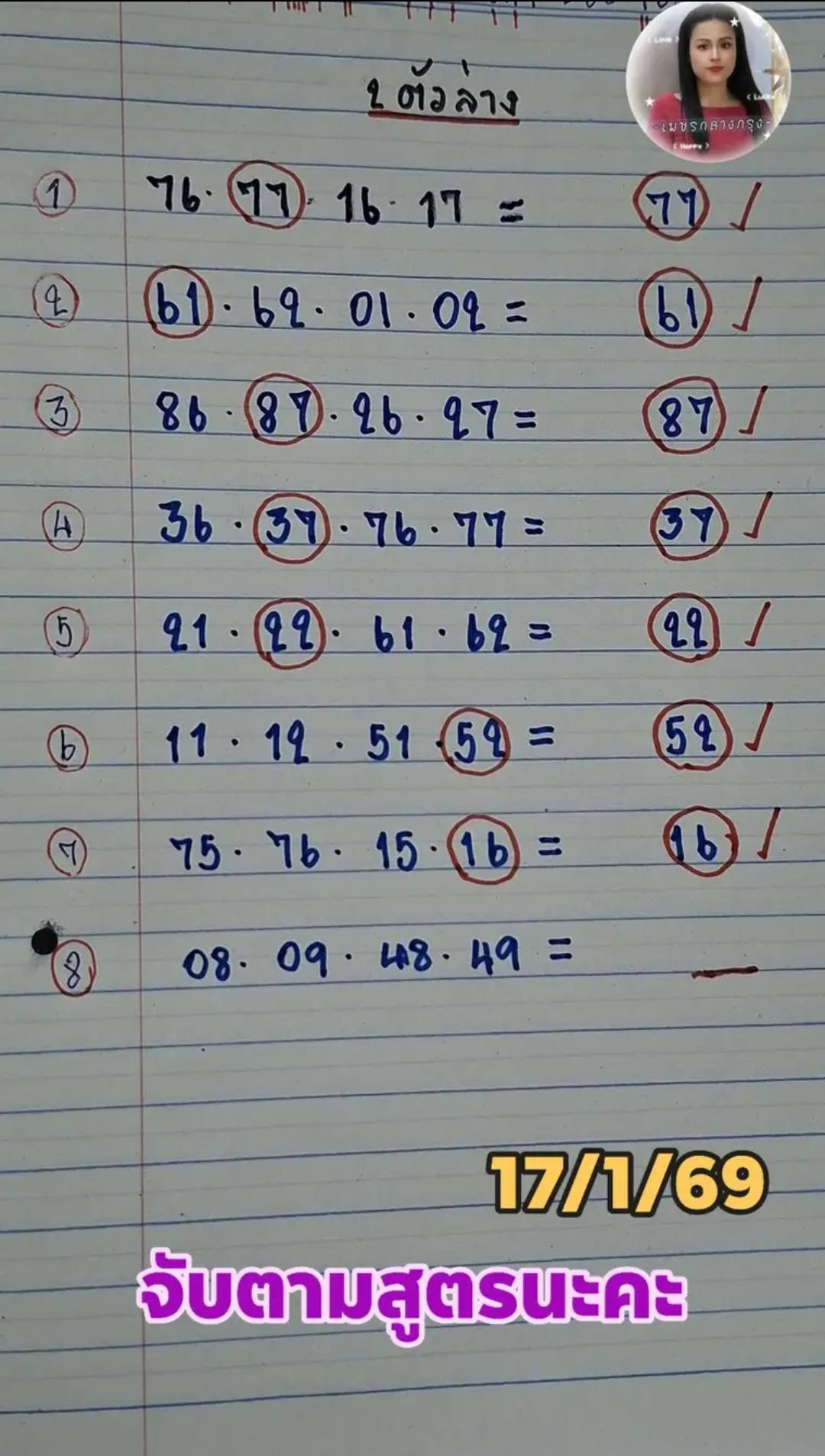 ชุดสรุปงวดวันที่ 17/1/69 คู่ท้ายบน